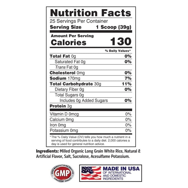 Apollon Nutrition Hot Rice Cereal delivers 30 grams of carbs from milled organic long grain white rice per serving.