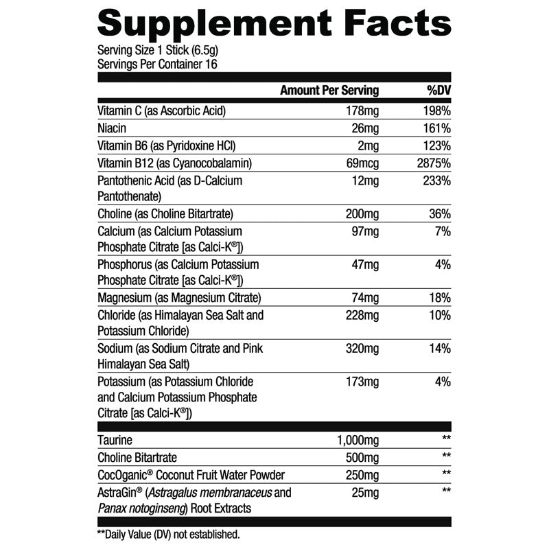 Ryse Hydration includes electrolytes, vitamins, and more!
