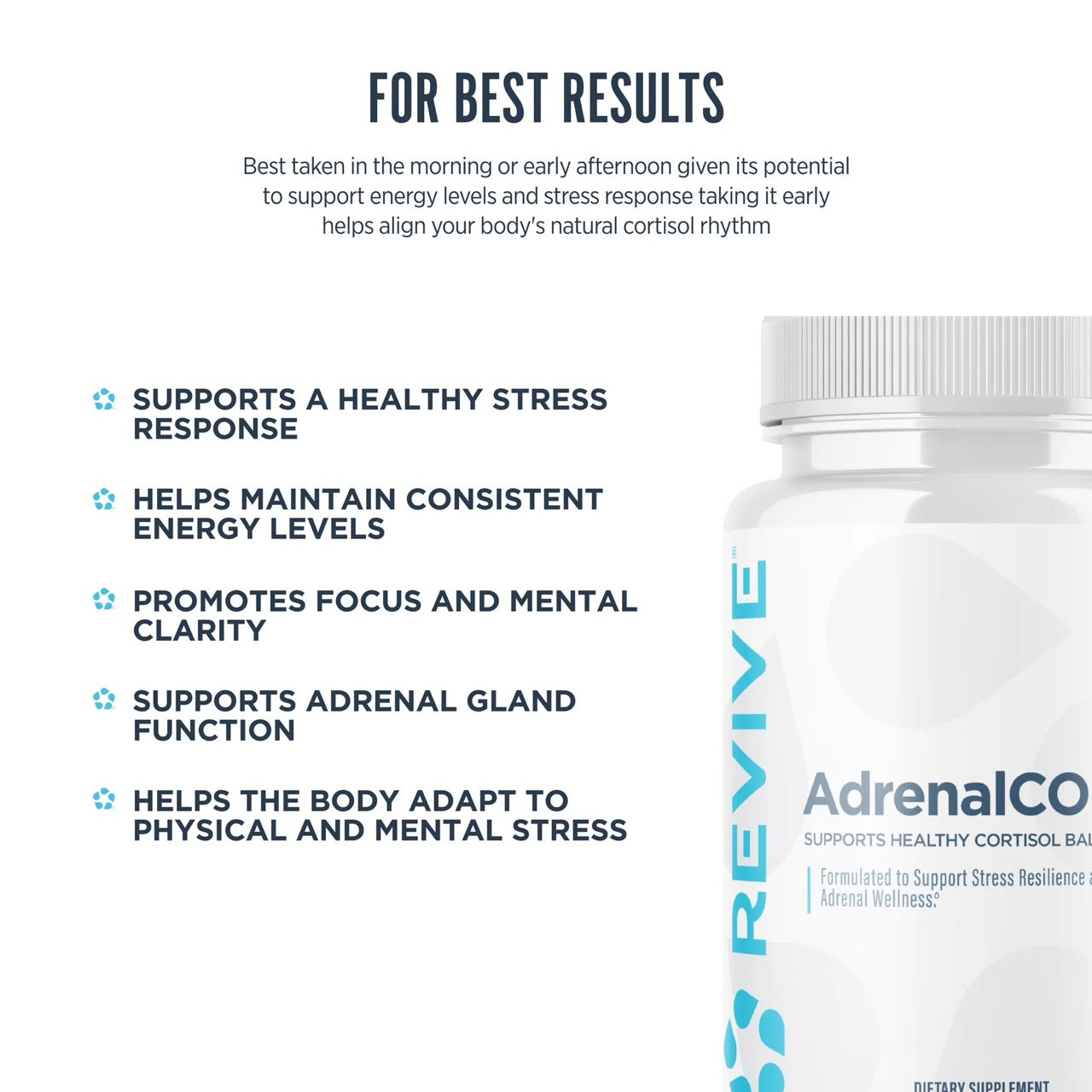 Revive Supplements AdrenalCORE is a powerful supplement designed to support your body's natural response to stress and promote overall health and vitality. Whether you're dealing with the demands of a busy work schedule, intense exercise regimen, or other stressors in your daily life, AdrenalCORE can help you feel your best.