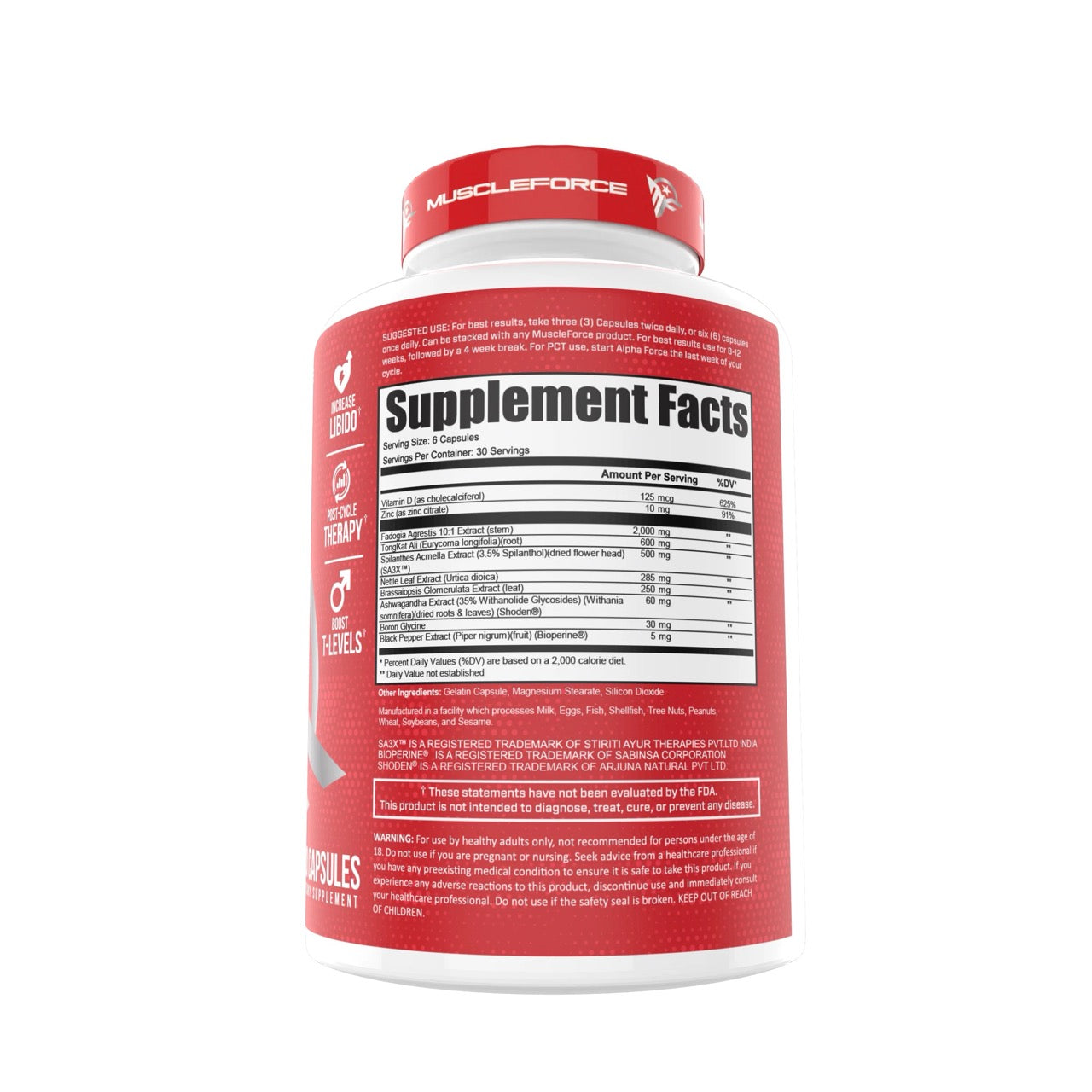 Alpha Force delivers, literally! It is so loaded with highly effective, quality ingredients, that the formula couldn’t be contained in anything less than 8 Capsules!! We recommend taking half a dose, twice a day. Our Team MuscleForce testers saw the best results taking 4 capsules with breakfast and 4 capsules with dinner. By splitting up your serving, you are getting enhanced testosterone support throughout the day, and when your body is recovering the most, while you are asleep.