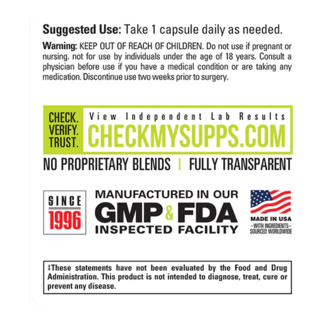 NOT INTENDED FOR USE BY PERSONS UNDER THE AGE OF 18. KEEP OUT OF THE REACH OF CHILDREN. If you are pregnant, breast feeding, have known medical conditions (including kidney or liver disease) or are taking prescription or OTC medication(s) consult with your health care practitioner before using this product. Discontinue use two weeks prior to surgery.