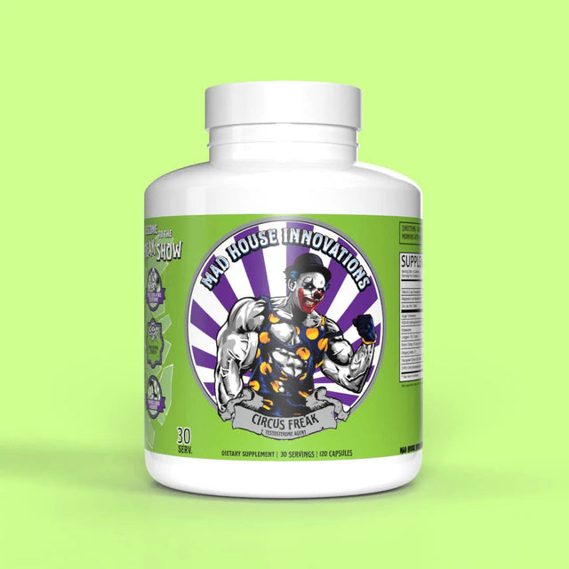 Circus Freak was designed by Madhouse Supplements to possibly enhance testosterone levels, improve strength, elevate energy, and improve libido with 10 ingredients.