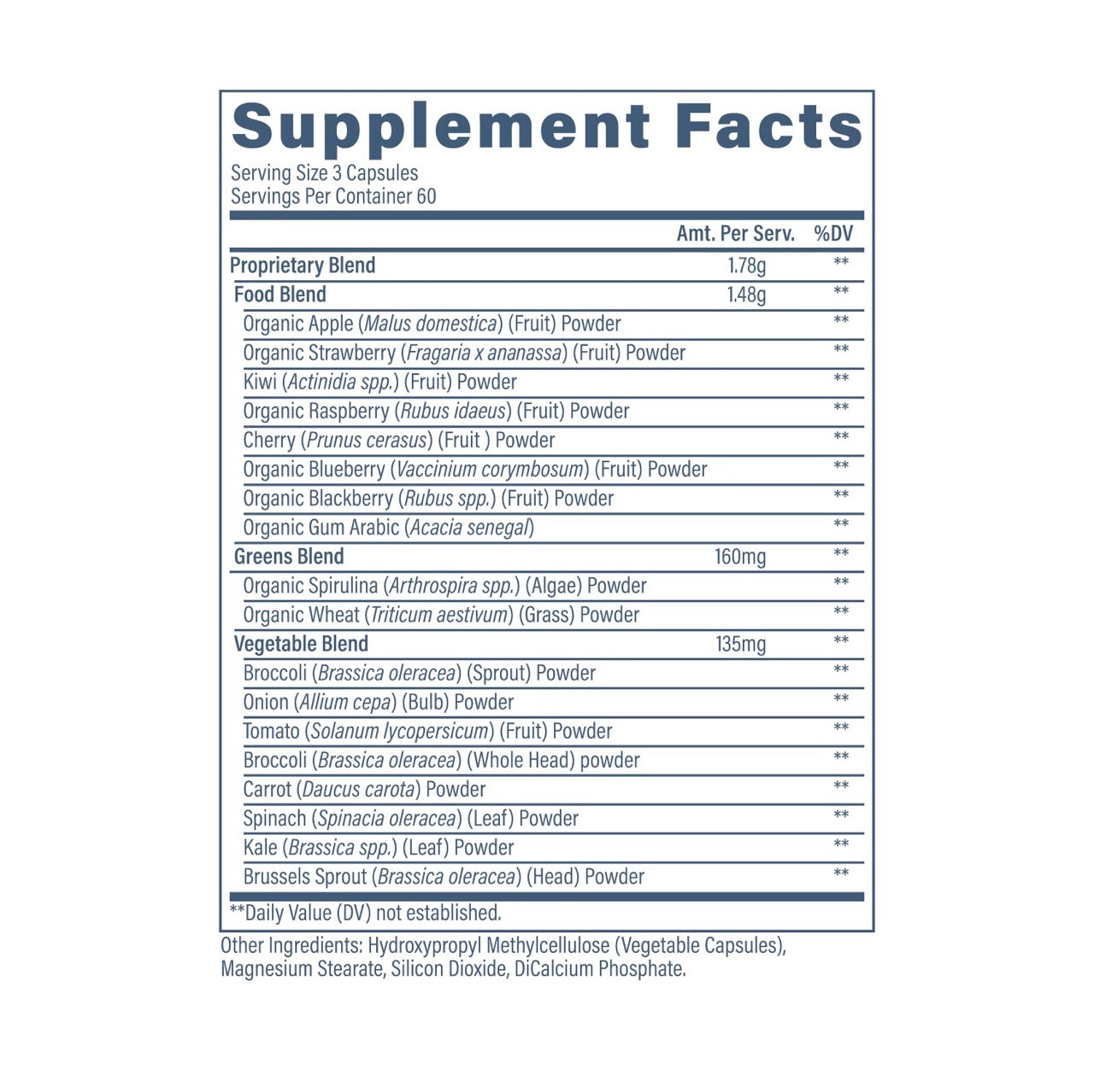This Daily Greens supplement was formulated for people with diets low in fruits and vegetables. In other words, if your daily intake of fruits and vegetables is lower than the recommended amount, then this supplement is for you. Daily use of this naturally-derived formula may help improve antioxidant activity, promote natural detoxification processes, and also serves as a high ORAC (oxygen radical absorbance capacity) blend.