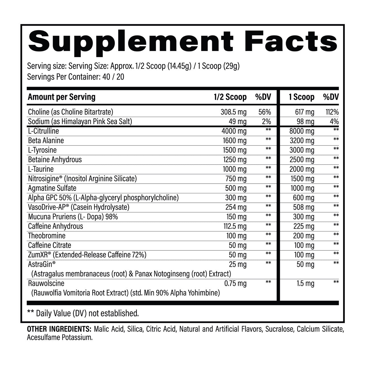 Deception Pre Workout Supplement Facts