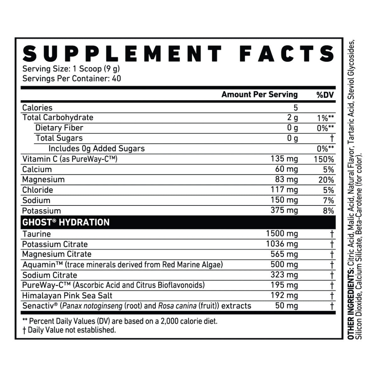 Ghost Hydration Supplement Facts