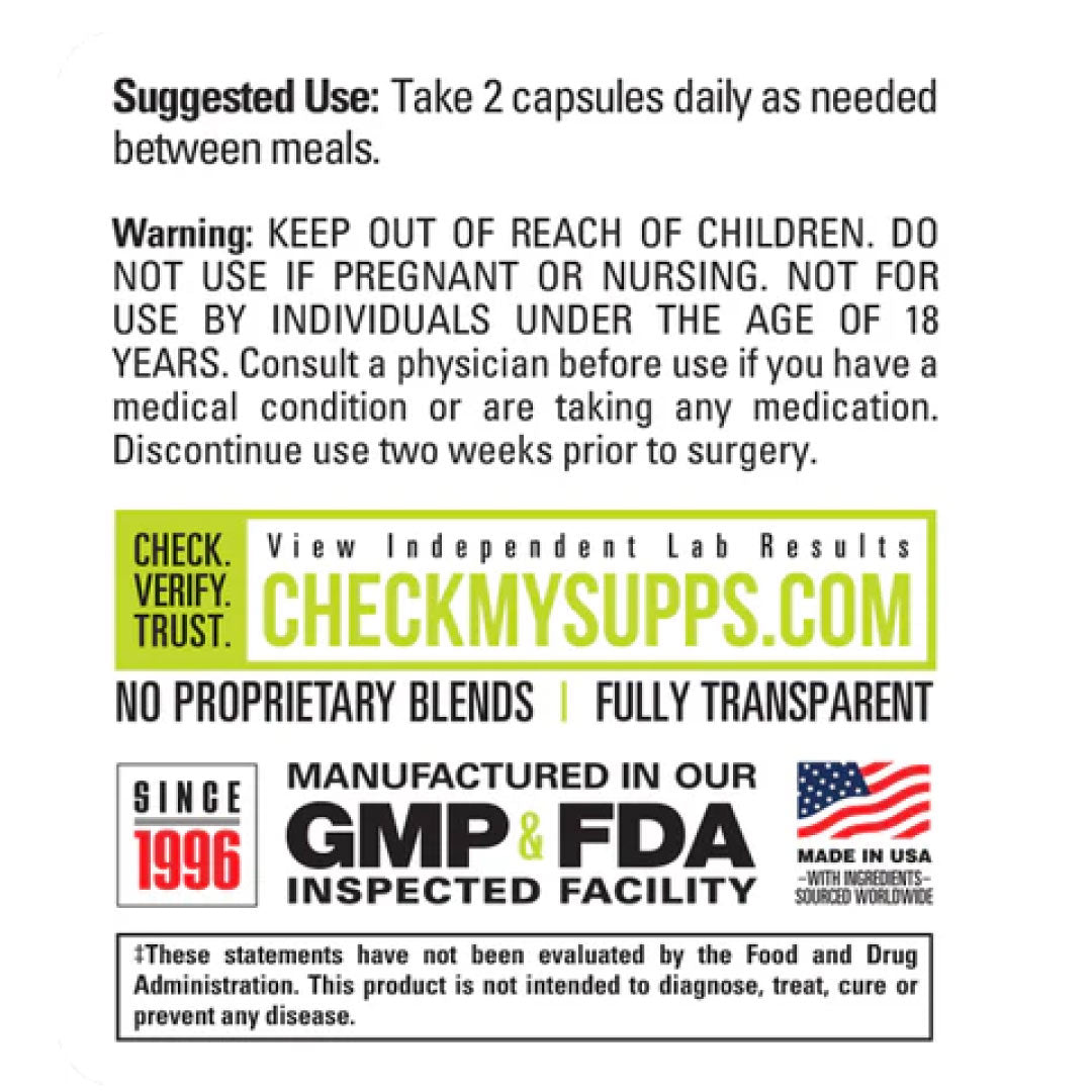 NOT INTENDED FOR USE BY PERSONS UNDER THE AGE OF 18. KEEP OUT OF THE REACH OF CHILDREN. If you are pregnant, breast feeding, have known medical conditions (including kidney or liver disease) or are taking prescription or OTC medication(s) consult with your health care practitioner before using this product. Discontinue use two weeks prior to surgery.