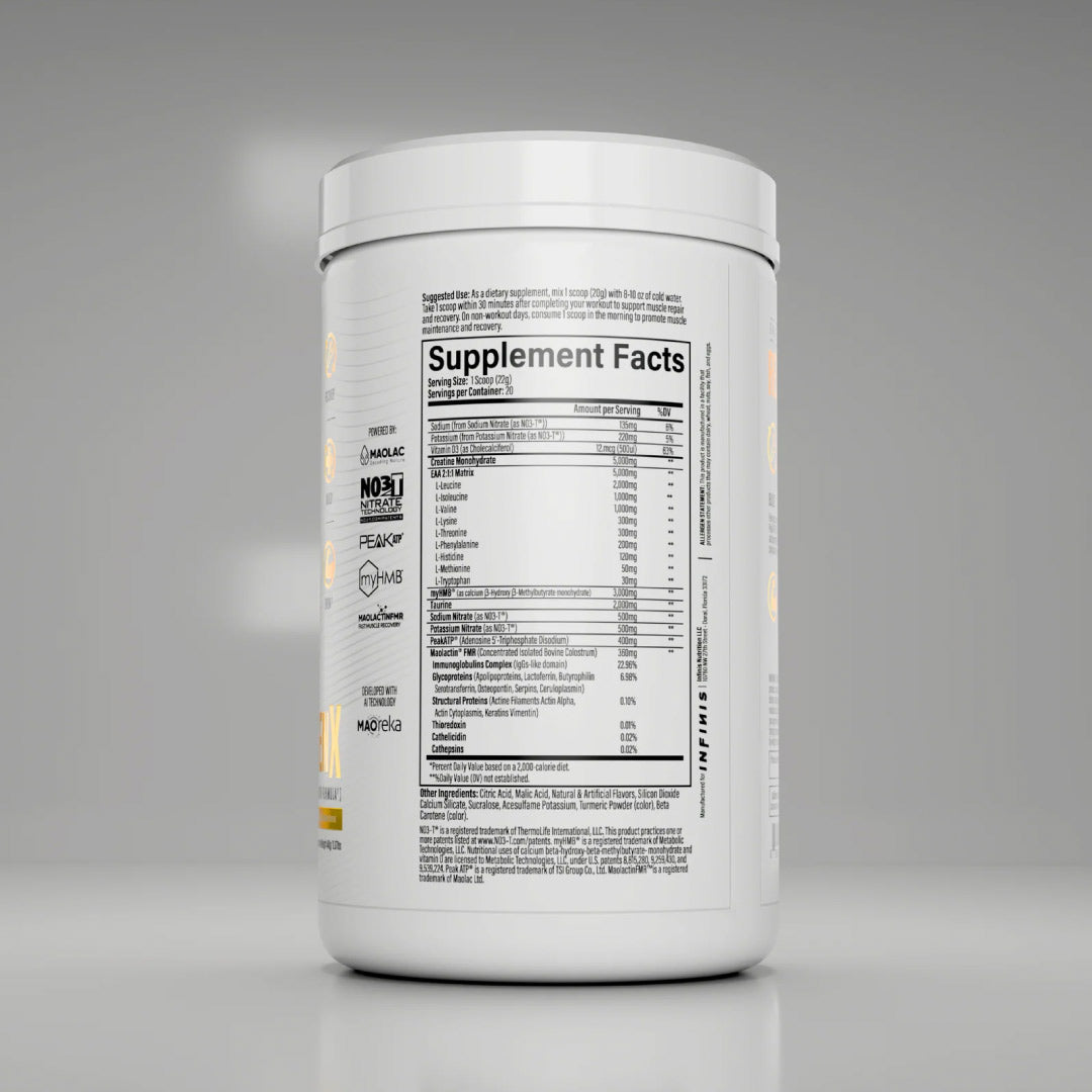 Infinis ReGenx is formulated to aid in protecting muscle tissue and accelerate repair at the cellular level. By reducing muscle breakdown and enhancing recovery, it helps ensure you’re ready to tackle your next workout faster and stronger. Supercharge your recovery with a cutting-edge combination of MyHMB and Maolactin™ FMR.