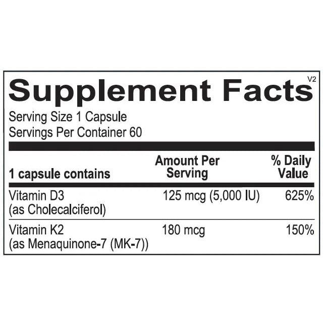 Vitamin K has been found to help maintain bone mineral density. In addition, vitamin K2 is a potent vitamin in its ability to block the progression of arterial thickening and stiffening. Vitamin D and vitamin K act synergistically, by elevating and activating enzymes that promote a healthy heart and strong bones. For instance, vitamin D and vitamin K provide cardiovascular protection by elevating and activating Matrix GLA Protein (MGP), an inhibitor of circulatory calcification, respectively. Thus, both vitamin D3 and K2 are necessary for a healthy heart and strong bones.