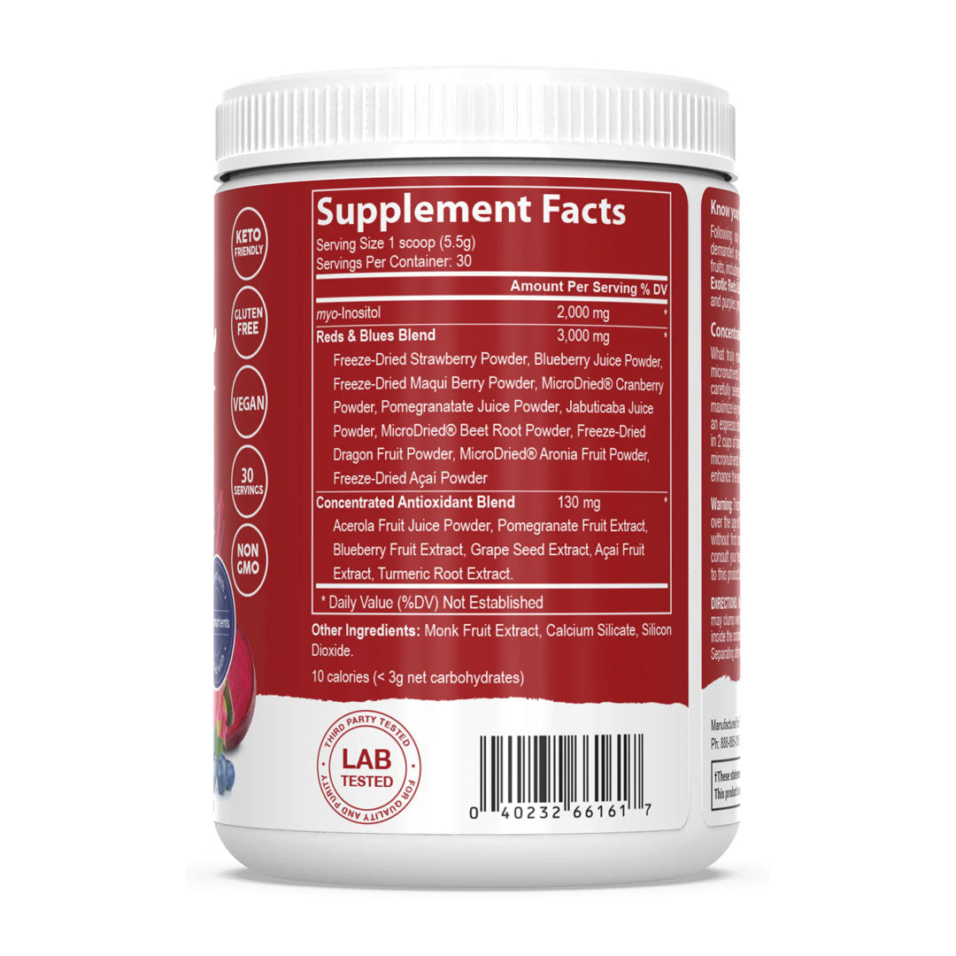 PEScience Reds & Blues takes a different approach by delivering not just "reds", but also the powerful "blues and purples", to yield a wider-spectrum of antioxidants in this powdered supplement.