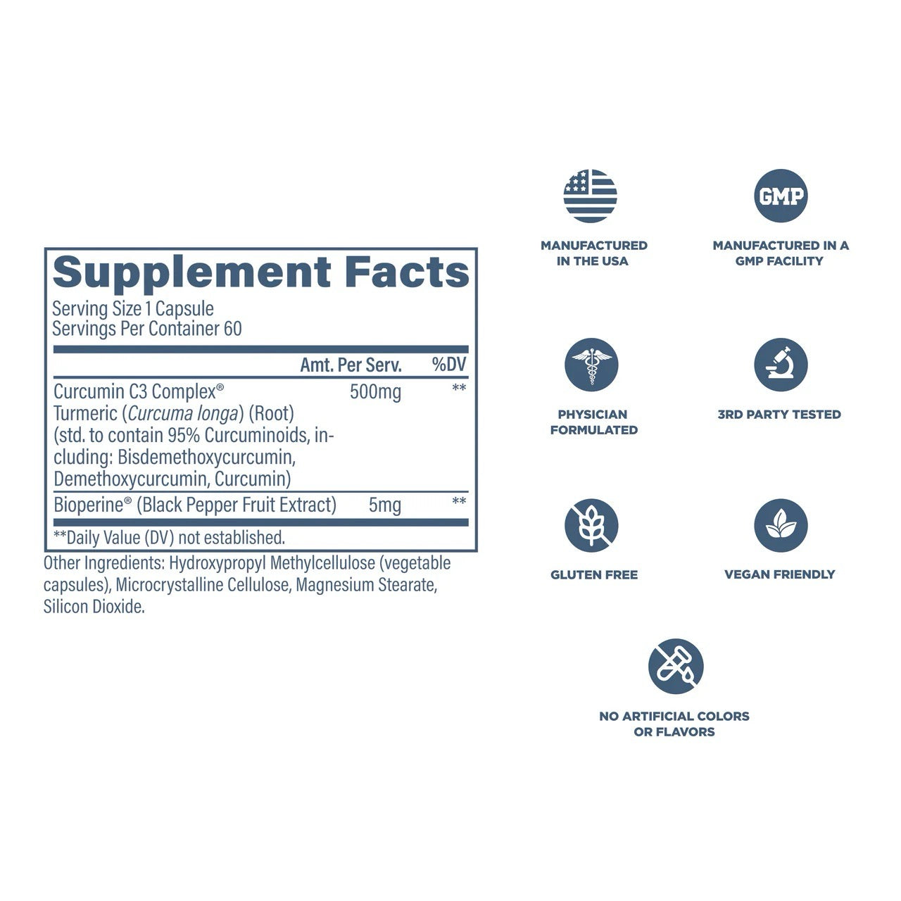 Curcumin C3 Complex® is a patented and clinically studied form of curcumin, the active compound found in turmeric. It contains three main curcuminoids: curcumin, demethoxycurcumin, and bisdemethoxycurcumin, standardized to 95% curcuminoids. This specific composition is designed to maximize the health benefits associated with curcumin.