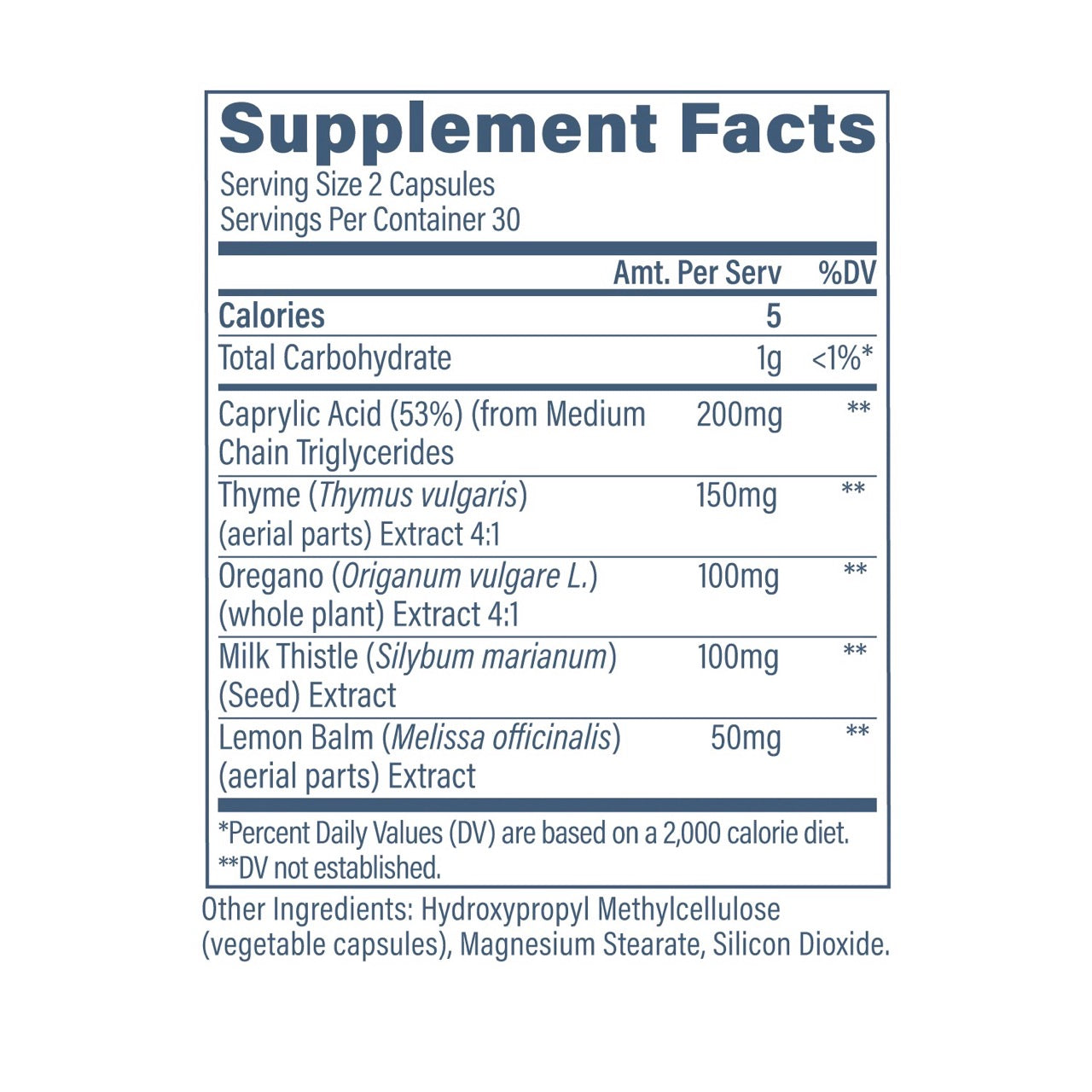 Bacterial overgrowth is a condition that occurs when there is an imbalance of microorganisms in the small intestine. These bacteria regulate and maintain healthy digestion and when balance is lost, symptoms such as bloating, brain fog, fatigue, foul gas on a consistent basis can occur. We've composed a blend of herbal antimicrobials to help treat moderate bacterial overgrowth. These natural ingredients work synergistically to combat this imbalance and restore healthy levels to relieve and prevent these digestive complications.