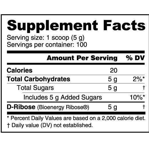 Unfortunately, hearts, muscles, and other vital tissues in the body cannot make ribose very quickly, and ribose is not stored in our cells and tissues. That's why supplementing with ribose as directed will help your cells make energy - quickly, safely, and naturally. This means you can feel more energetic, stronger, and healthier every day.