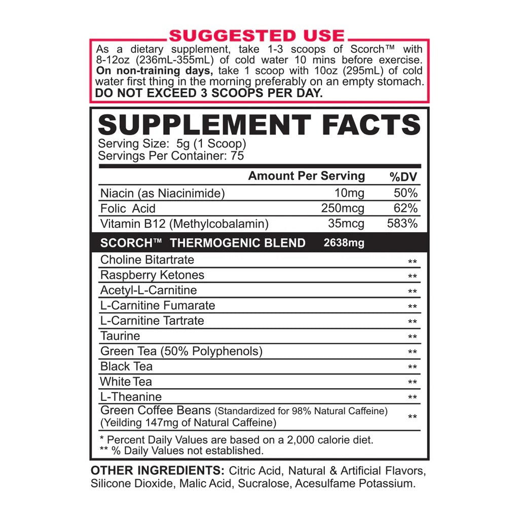 When combined with proper diet and exercise, Scorch powder helps amplify your fat burning potential through clean energy from organic caffeine and increased thermogenesis from multiple tea and carnitine sources.