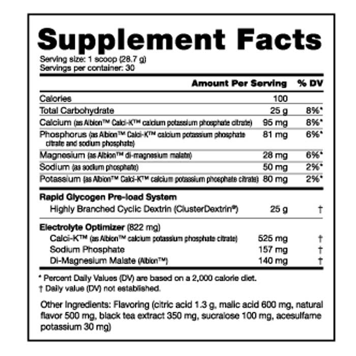 By itself, SuperCarb is an ideal fuel source and a better alternative to sugar-laden sports beverages that can cause bloating, sloshing, sugar crashes, and other stomach-related issues. Furthermore, SuperCarb includes a cleverly crafted electrolyte blend designed using Albion Lab's premier mineral complexes as electrolyte donors. These help ensure efficient muscle contractions while eliminating the potential for cramping due to dehydration from training hard. SuperCarb (available unflavored) can also be added to any pre-, intra-, or post-workout product when sustained energy is needed for long, intense workouts or to help restore depleted muscle glycogen.